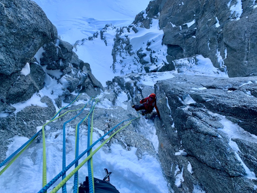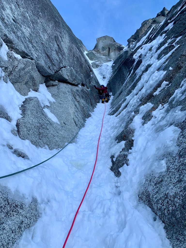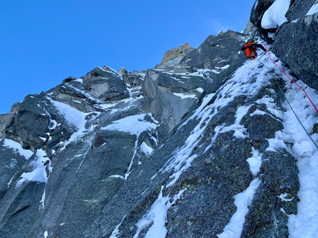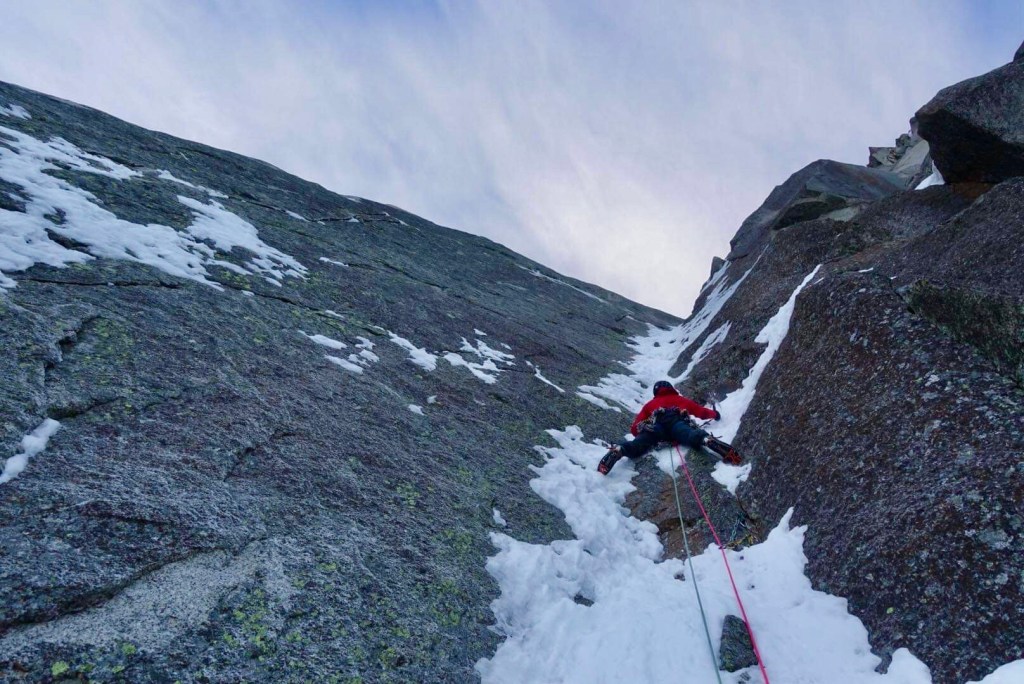 January started off with a bang after heading back out to Chamonix early in the month. My return to the valley coincided with some of the best climbing conditions Chamonix has seen in recent years, particularly in the mid-mountain range. With this in mind myself along with fellow Mountain Guides Paul Swail and Tom Grant jumped on ‘Beyond Good and Evil’ on the Aiguille des Pelerins. Now much has been written about this route, its first ascensionists and its / their reputations. Originally established by Mark Twight and Andy Parkin in April 1992 the line had taken 3 attempts over a number of years. The pair had graded the route as severe as they came at the time unable to get a single ice screw in on the ascent and illustrating the topo to the route with a skull and crossbones to denote the serious and dangerous nature of the climbing on the final pitches. When I was in Chamonix in my late teens and early twenties Mark Twights’ books ‘Extreme Alpinism’ and ‘Kiss or Kill, Confessions of a Serial Climber’ were legendary inspiration to us and his masochistic style very intriguing to us as youngsters so it was cool to be able to jump on such an iconic route.